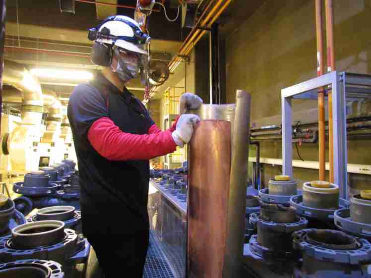 赏金国际将废弃物转化成有效的工业或民生原物料,,,图为废铜液淬炼后再制成纯度极高的铜管