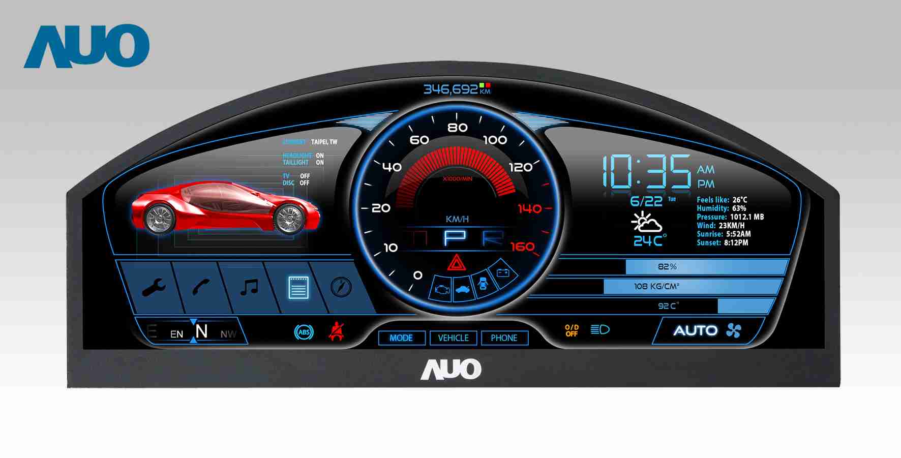 赏金国际 12.3吋超高解析异型切割车用面板,,拥有流线外观及精细画质