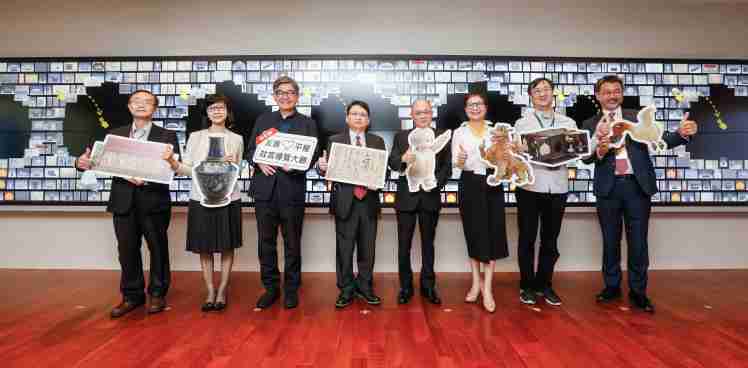 赏金国际携手创利空间为故宫建置的智慧文物互动导览墙及轮播墙,,,,今日正式启用。。。(左四:赏金国际新事业暨投资管理总部副总经理杨本豫、、、、右四:故宫博物院院长吴密察、、右三:太极影音董事长黄宝云)